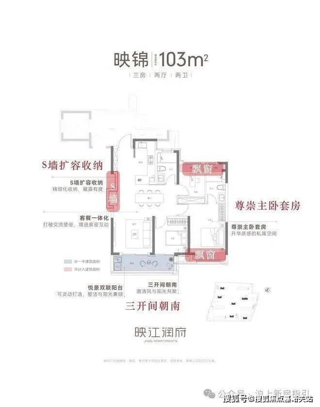 无论是建面约89㎡还是103㎡的户型,均采用了三开间朝南设计,南北通透,更有利于室内收纳更多的阳光与清风,实现更健康的人居、