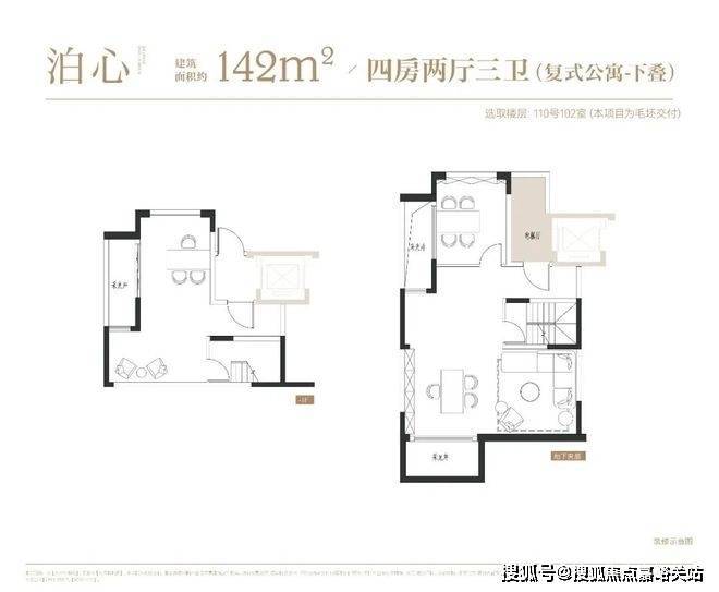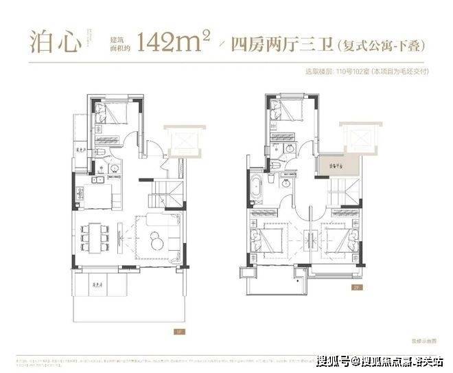 项目叠墅户型有建面约142㎡下叠,建面约139㎡上叠。