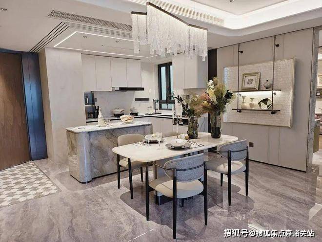 其一,半开放式厨房,结合客餐厅阳台一体化设计,当你站在厨房,视线无遮挡直接触达阳台,甚至直抵外面景观。