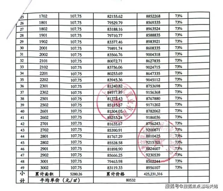 一房一价表: