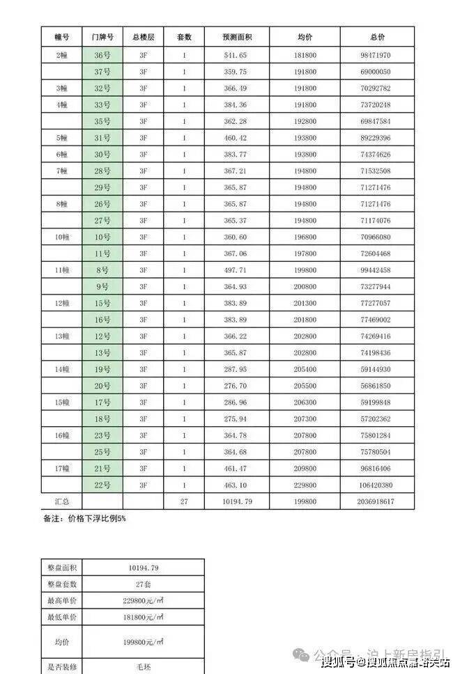 别墅一房一价表: