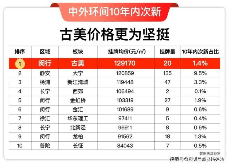 1、中外环间古美挂牌价名列前茅,特别10年内次新价格甚至能排整个环线第一。