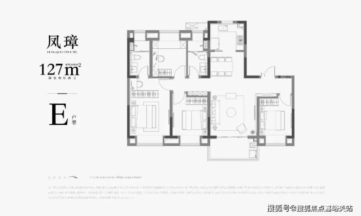 E户型 | 建面约127㎡4房户型图▼