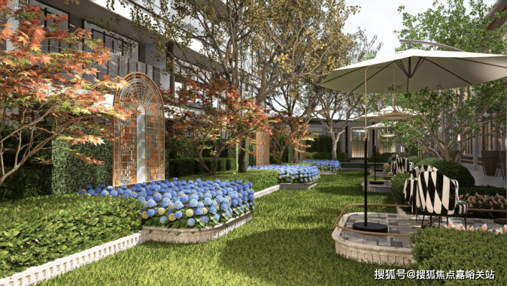 海派生活轴的端点是邻里交互的艺术花园,是业主茶余饭后散步的好去处。