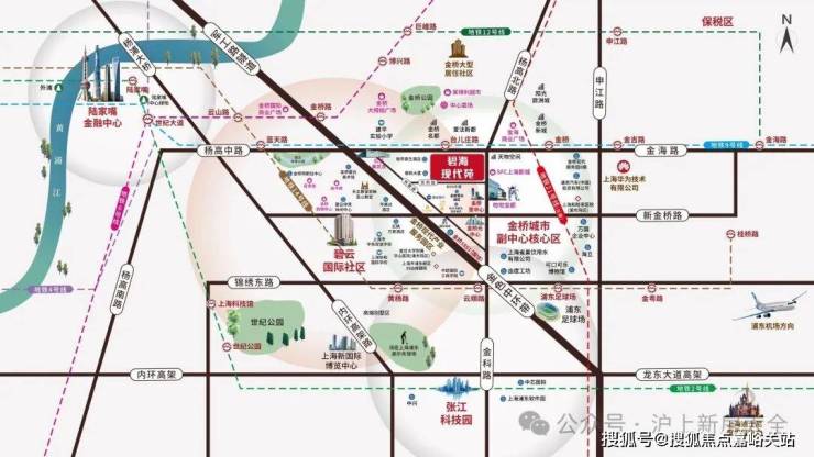 休闲场所:浦东足球场、金桥公园、碧云体育公园、金桥高尔夫俱乐部等
