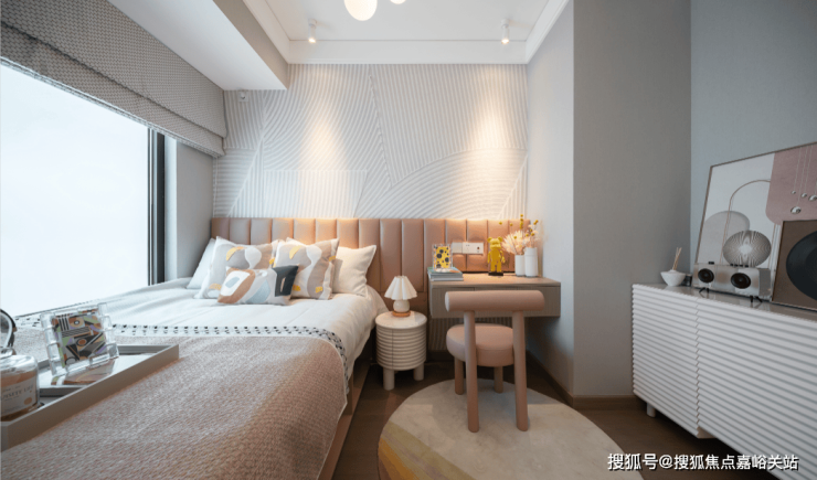 主卧也颇具亮点,面宽达到约3.5米,飘窗的尺度很给力,进一步扩大了使用空间。