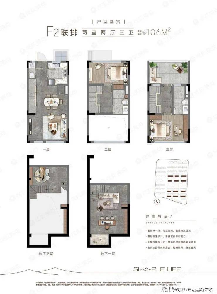 层高:洋房2.9米,联排客厅挑空约6米