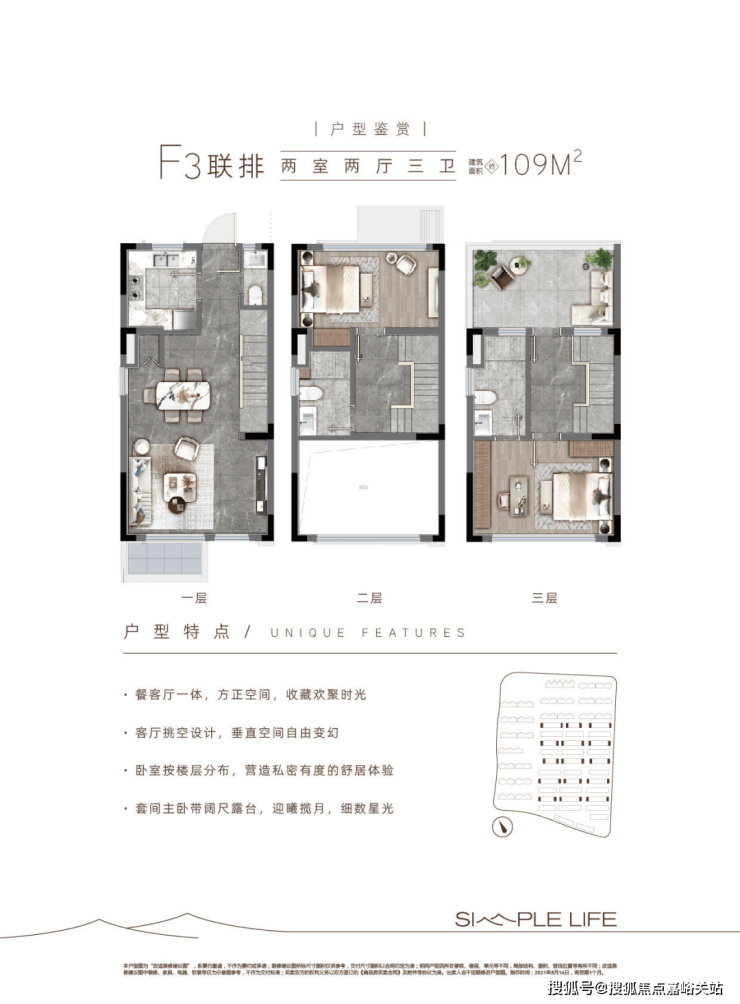在售面积:洋房75㎡、联排89-109㎡