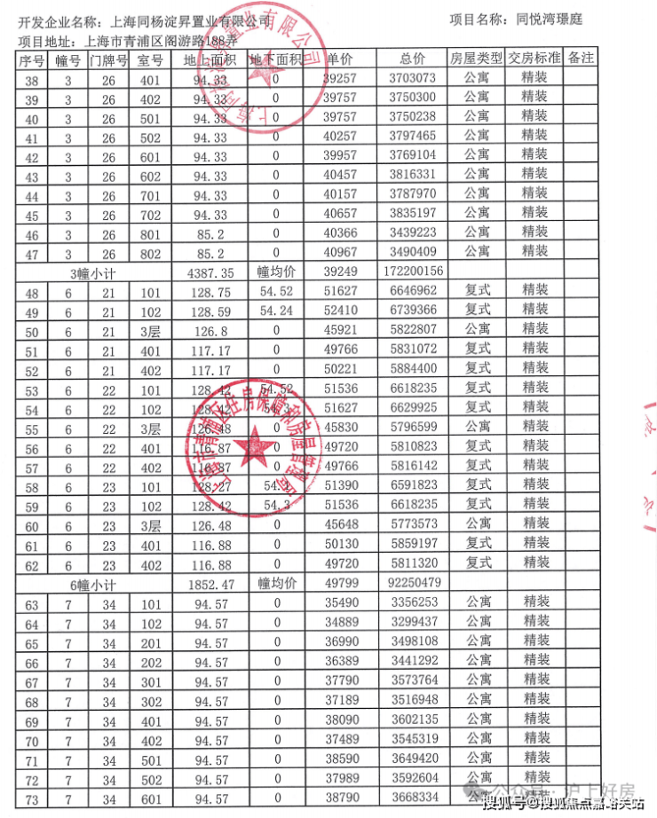 附全套一房一价表: