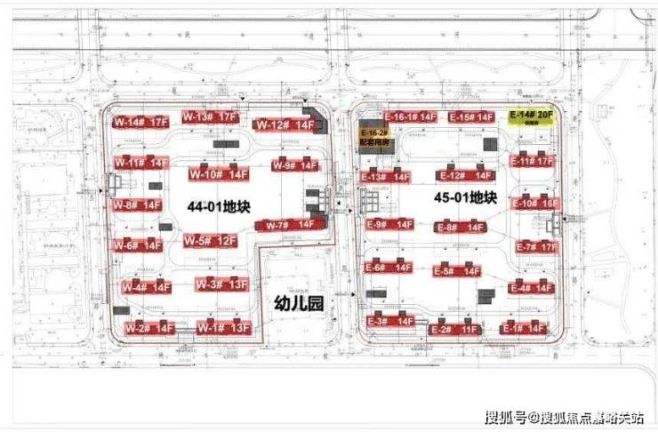 根据设计方案显示,44-01地块拟建 14栋12-17层的高层;45-01地块拟建 16栋11-17层高层住宅,其中E-14#为保障房。
