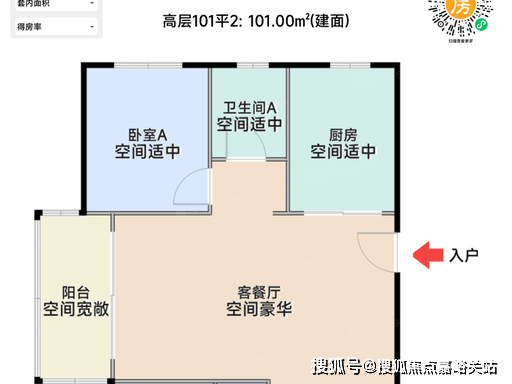 高层明星户型:建面约 101㎡三室两厅两卫