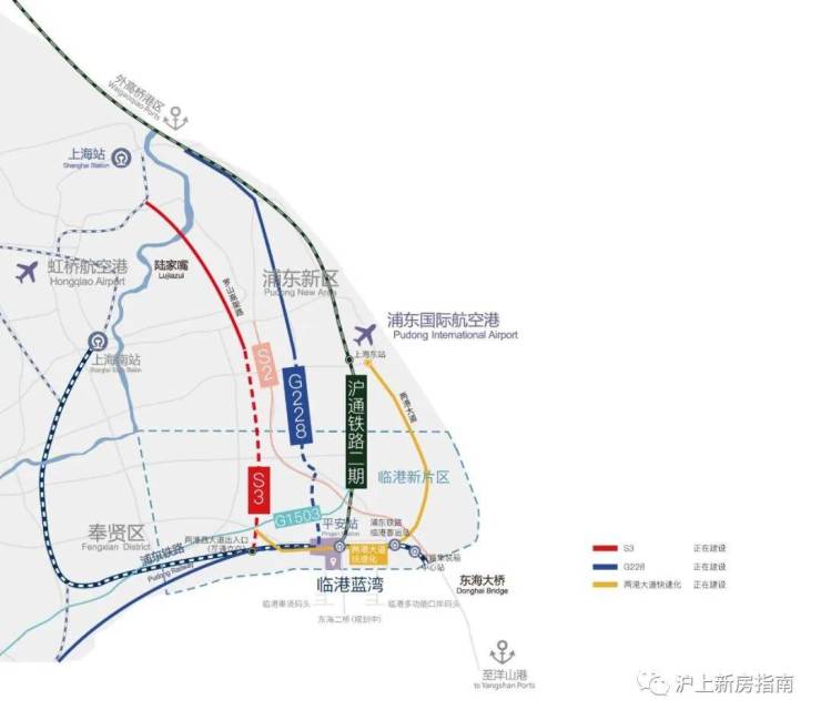 轨道交通16号线、27号线(招标中);南枫线、曹奉线(规划中)S2、G1503、S3沪奉高速(在建);六大交通线路,形成通达全球的门户枢纽,三横两纵深度串联全球城市格局;