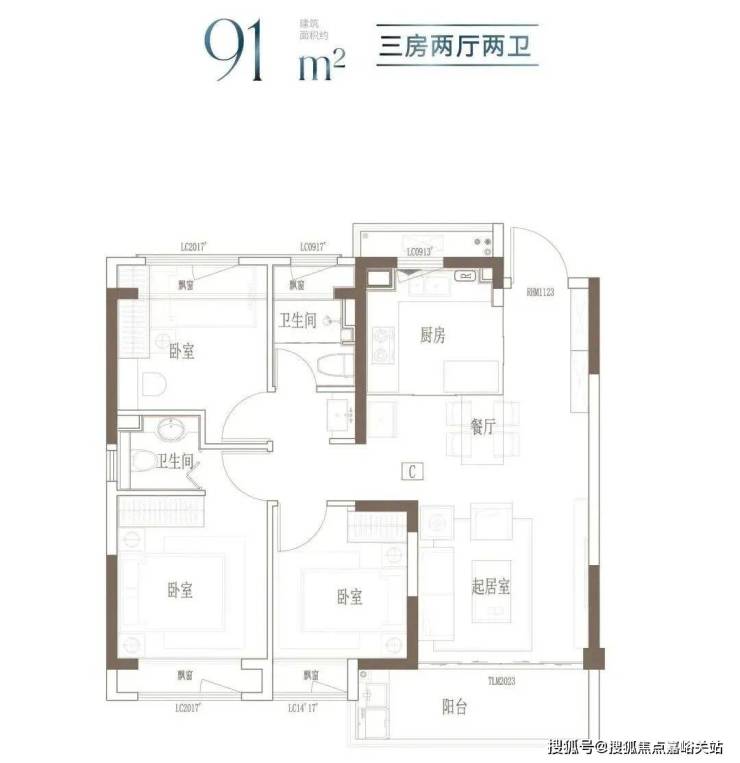 建面约91㎡-121㎡ 3房2厅2卫;这几个户型都是3房的设计,满足想一步到位的购房者。3开间朝南+客餐厅连通阳台+全卧室飘窗,以及套房式主卧设计+2卫,即使是三代同堂,也能让生活从容。