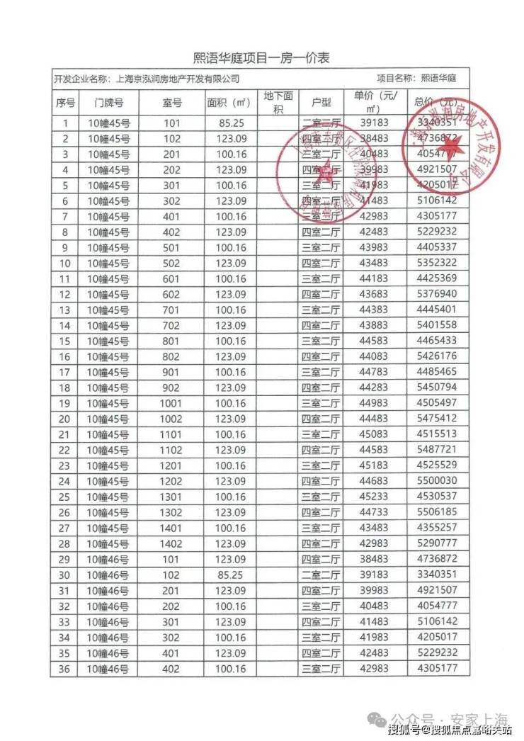 上期一房一价如下:
