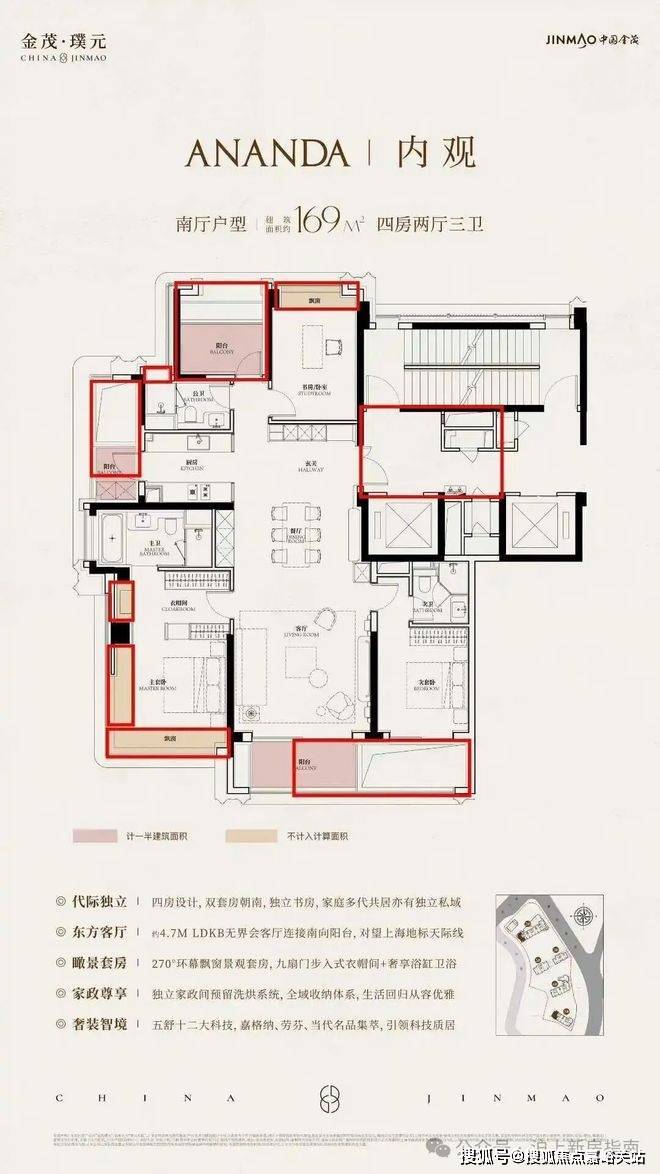 总价约2100-3660万金茂璞元售楼处电话400-856-9058