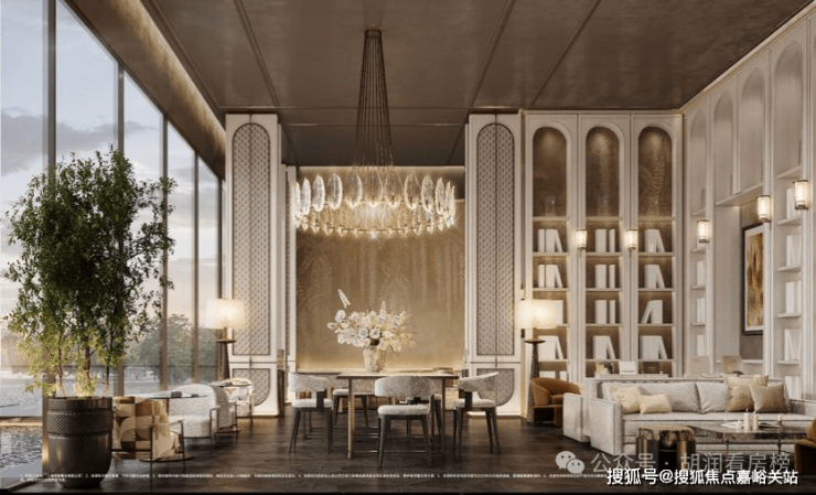 据悉,作为项目的升级迭代的最大亮点,项目约1100㎡滨水下沉式会客厅,即将于本月正式亮相。下沉式会客厅未来将集合私宴、健身、休闲、阅读等多重功能于一身,同时,通过绿意隐奢的高定质感、精细化奢材立面景墙等元素的运用,也将为墅居圈层呈现出尊属的私密性与仪式感。