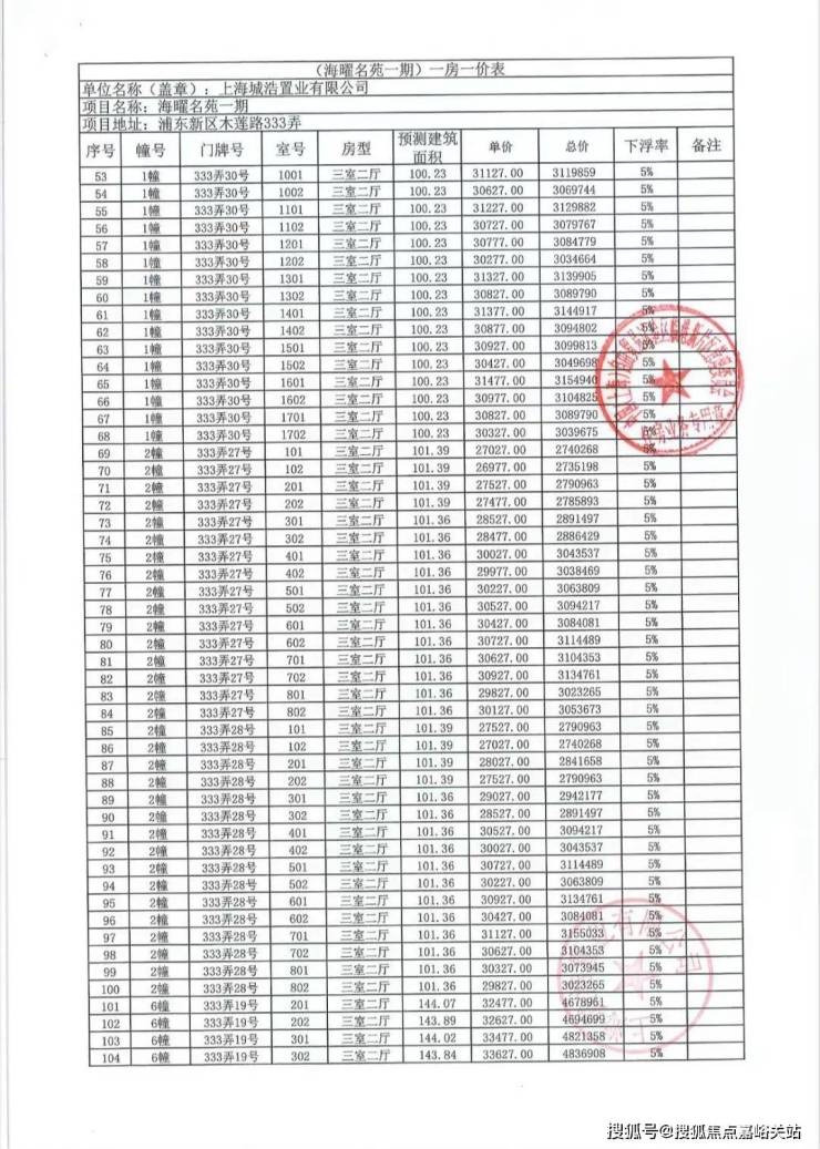 项目一房一价表▼