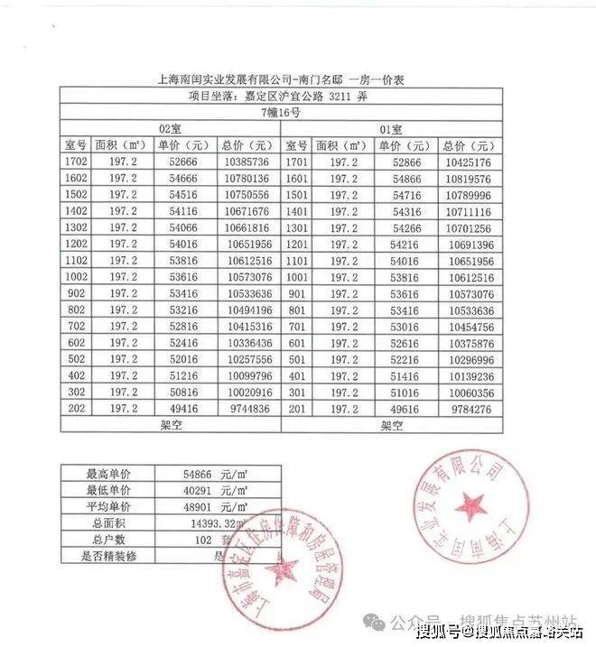 项目一房一价表▼