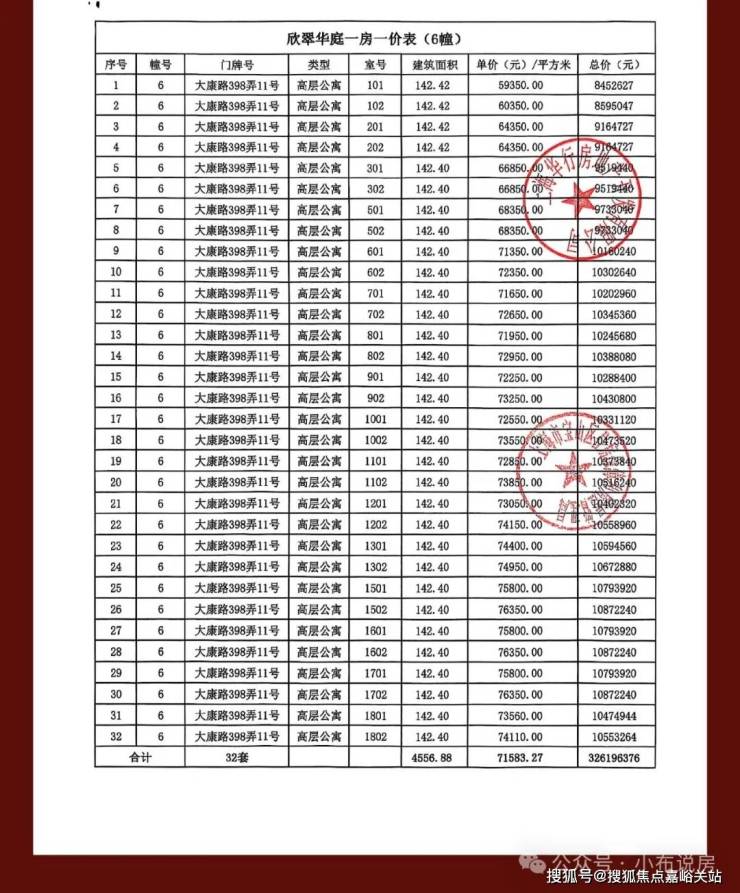 9月10日,该项目公布了“一房一价”备案表。其中,一套865平方米的顶层复式房源震惊业内,其总价高达2.83亿元,折合单价约32.68万元/平方米,一举超越此前新房单价纪录保持者——保利世博天悦顶楼房源(单价30.27万元/平方米),成为目前上海新房市场中备案单价最高的住宅产品。