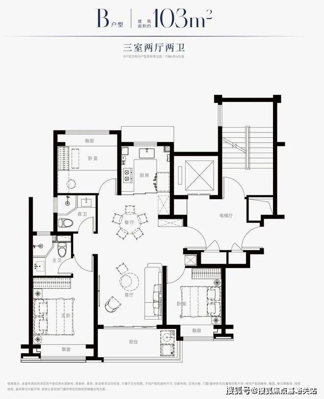 建面约103㎡3房2厅2卫