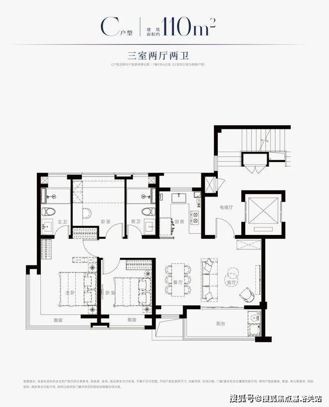 建面约110㎡3房2厅2卫