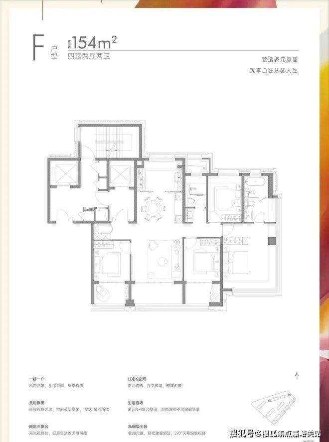 建面约154㎡四房户型: