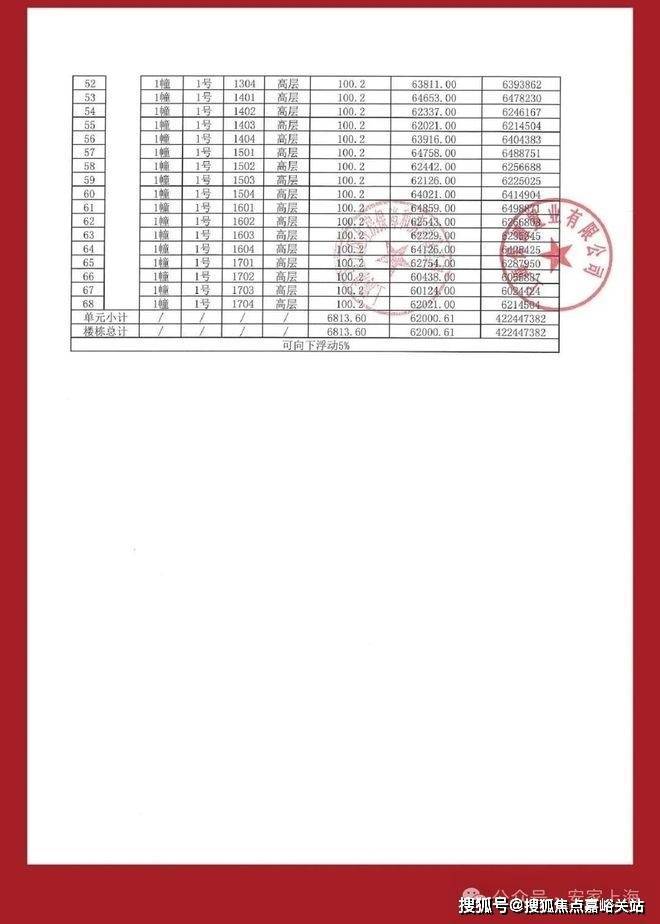 一房一价表: