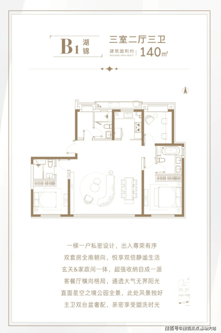 125㎡户型与第一排住宅间最短楼间距也有63米!第一排则直面星空之镜城市公园!