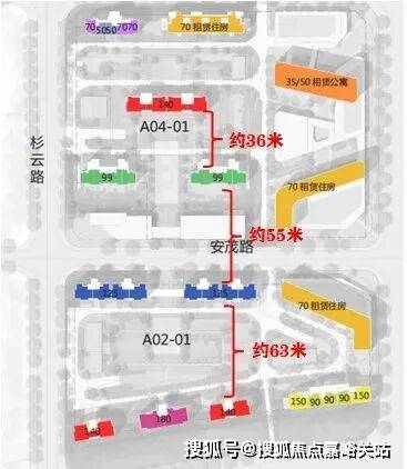 北侧地块140㎡户型楼栋与99户型楼栋距离约36米,但两排建筑是错开的!140㎡户型楼栋采光和视野极佳!99㎡户型楼栋与125㎡户型楼栋之间隔着3层的商业的道路,间隔约55米!