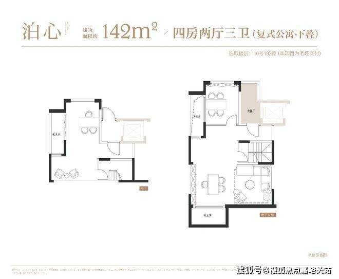 项目叠墅户型有建面约142㎡下叠,建面约139㎡上叠。