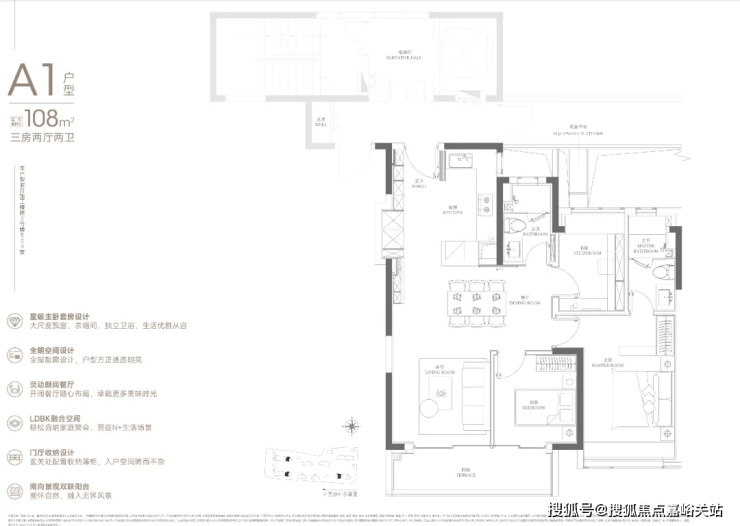 108㎡的入门级三房,起步门槛相比润府提高不少。