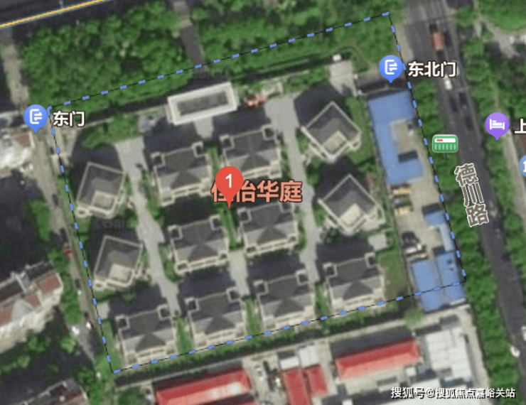 放大卫星地图来看,这个小区应该也是准现房或者现房状态,4栋独栋,16套双拼别墅(目测),建面约277-402㎡。