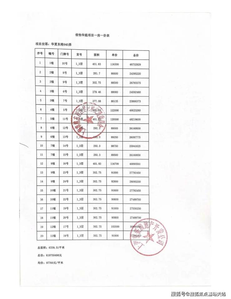 一房一价表