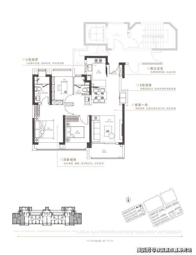华润置地时代之城高层产品将百平上下的改善户型做出了轻奢级的居住体验,把约133㎡的改善四房做出了豪宅的尺度感。