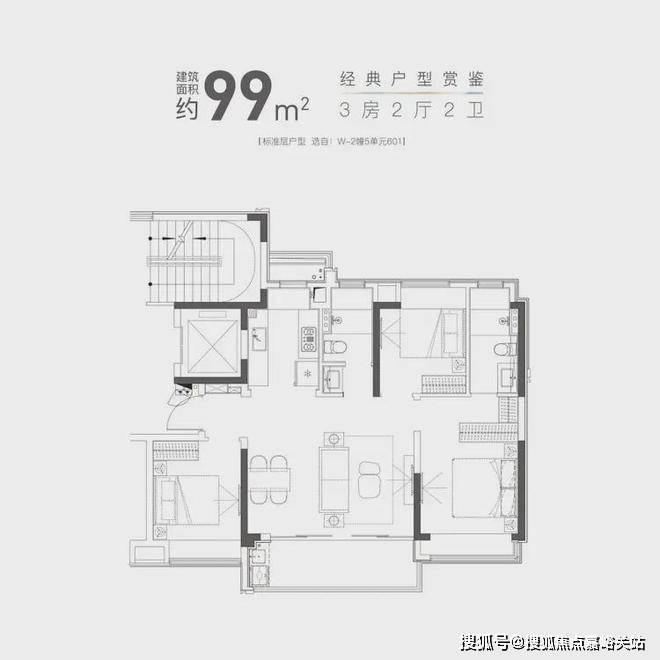 建面约99㎡3房2厅:横厅设计,采光满分!