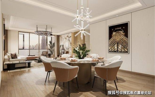 厨房餐厅以及客厅相连搭配大飘窗,不仅动线合理,还能保证整体室内的充足采光。