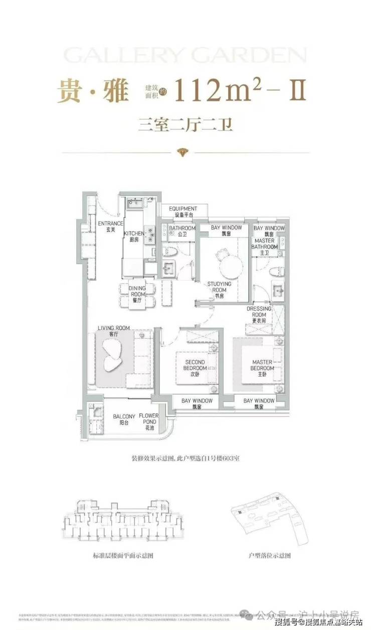 项目舍弃了传统逼仄的百平三房,将最小面积提升到了建面约112㎡,而这12个平方的提升,让整体户型的空间尺度感达到了新的高度。