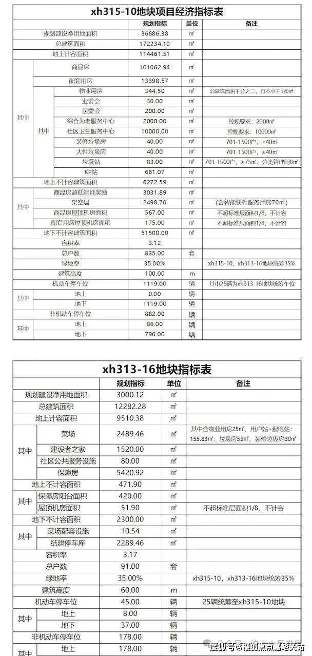 其中xh315-10地块为三类住宅组团用地(90%)、社区级公共服务设,施用地(10%), 总用地面积约36686.38平方米,容积率3.12,限高100米,总建筑面积约172234.10平方米,地上计容面积约114461.51平方米, 其中商品房面积约101062.94平方米,规划住宅套数835套。