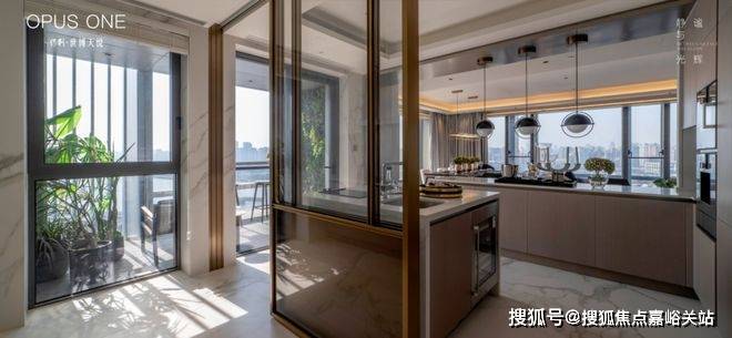 这客厅既是270°全景舱厅,无论全家在餐桌前欢聚一堂,还是孩子们在客厅嬉戏,一抬头便是以江景和城市为主题的巨幅油画。