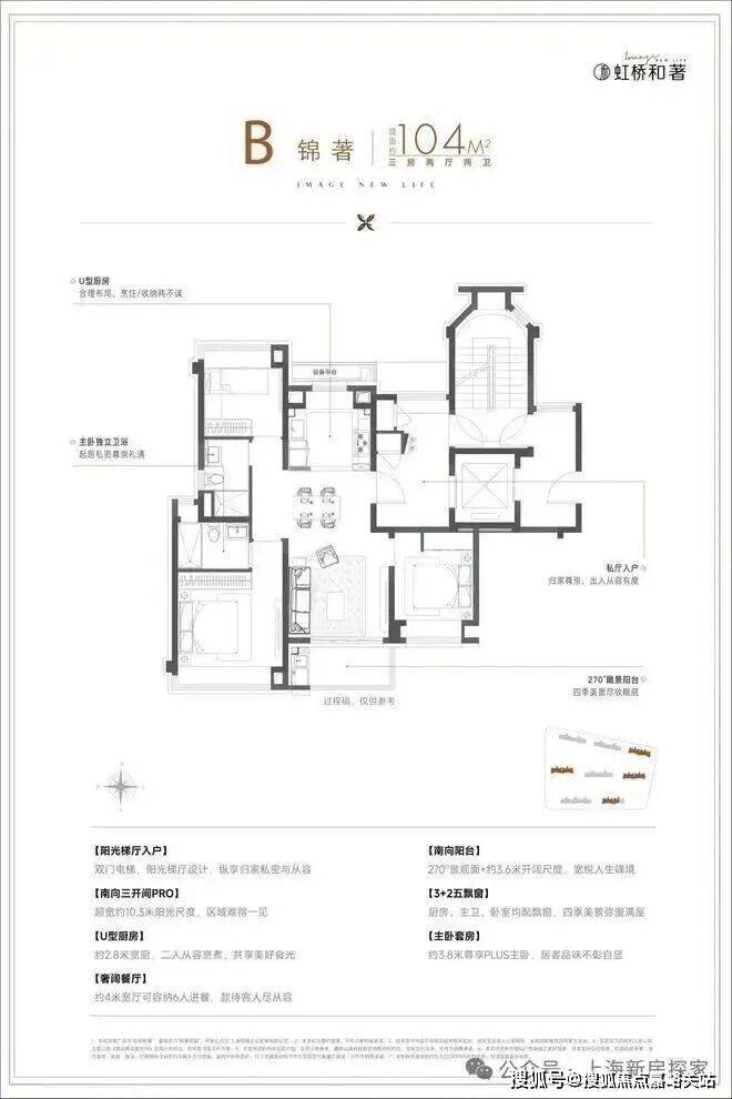 保利虹桥和著售楼处电话4008569058☑️☑️建面约104㎡3房,在建面94㎡小3房优点上,又进一步升级了尺度感,约10.3m的南向面宽,为室内带来了出众的采光面和尺度感,这个户型无论从实用性、尺度感,亦或是视野、采光、私密性来说,都做得相当优秀。保利虹桥和著售楼处电话4008569058☑️☑️