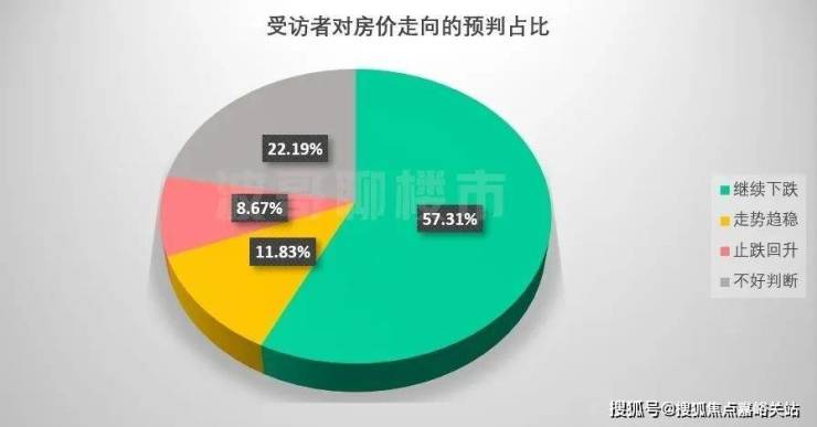 最新调查结果显示,有 57.31%的人认为后市房价继续下跌,选择走势趋稳的受访者占 11.83%,认为会止跌回升的人则仅有 8.67%