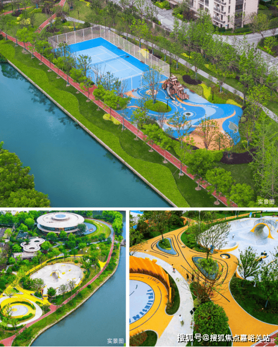 无限活力的滨江公园:家门口约20万方滨江公园,涵盖3km滨江步道、约1300㎡滑板公园&篮球场、家楼下网球场、亲子乐园与露营基地等多元场域,共同构成一座全域、全龄、全时的活力之城。