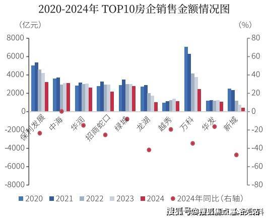 2024年TOP10房企中,仅有中海销售金额实现小幅正增长,其余9家房企全年销售金额同比下降。在市场持续下行期,企业间分化现象更加明显,民营房企同比降幅远高于央国企。2024年销售金额超过三千亿元的仅有中海、保利发展两家房企,数量较上年减少两家。当前市场对头部房企的投资能力提出了更高的要求,在核心城市优质地块出让带动下,头部房企拿地竞争激烈,房企维持销售规模存在较大压力。