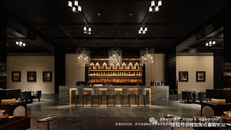 建筑面积约1500m²恒温泳池会所及落差达约10米的水幕下沉式园林的打造,在奢石、臻材等元素的空间应用中,让显贵世家的社交场景,相映于粼粼碧波的柔光之中,于方寸之间游离世外。
