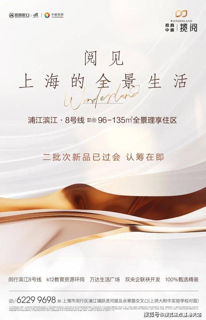 招商中旅揽阅售楼处电话:400-8824-198项目占位闵行区浦江滨江板块,地处浦江第一湾三水交汇核心,东侧为市政绿带,与上师大附中(九年一贯制)一路之隔,南侧为公共绿地,西侧为幼儿园,北侧为景观河道,西北侧为现状住宅(大居)。共计规划17栋12-14F小高层,户型建筑面积约96-135㎡,以揽阅迭新品质,敬献时代青年的全景理享住区。