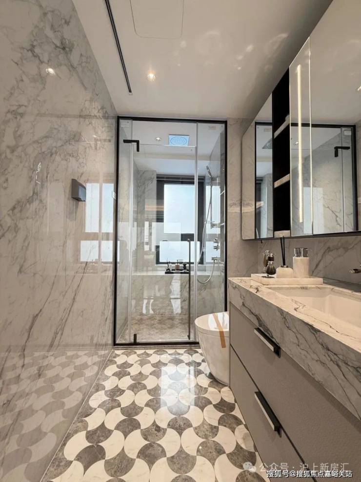 奢侈的空间感不仅体现在面积上,更在于 精心的设计、优质的材料与细腻的细节。在海上·清和玺精心的设计、优质的材料以及细腻的细节,才是真正的奢侈所在。就拿通室来说, 奢石、奢板、奢皮、奢镜的混合搭配,简直是一场视觉的盛宴,一站式满足了改善客群对于品质的极致追求。