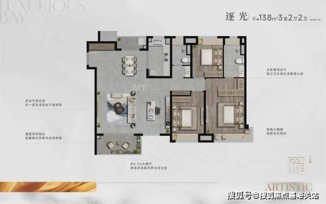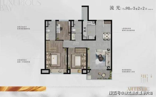 建面约98㎡3房