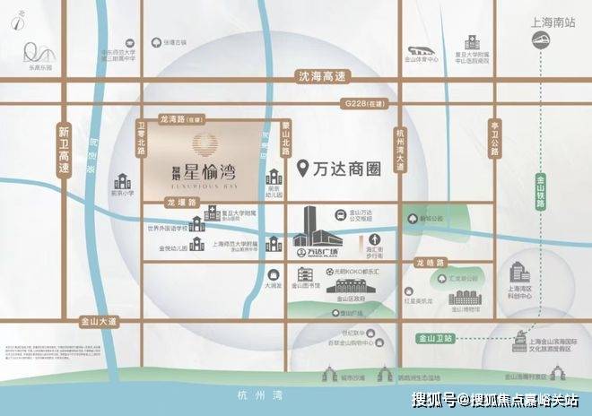 交通方面,「复地·星愉湾」距离金山卫站约4.5km,可直达上海南站;周边更有多条公交线路,在紧邻的万达枢纽站,金山10路、山阳1路、石漕线、朱卫线等十余条公交线路,通达金山全域。
