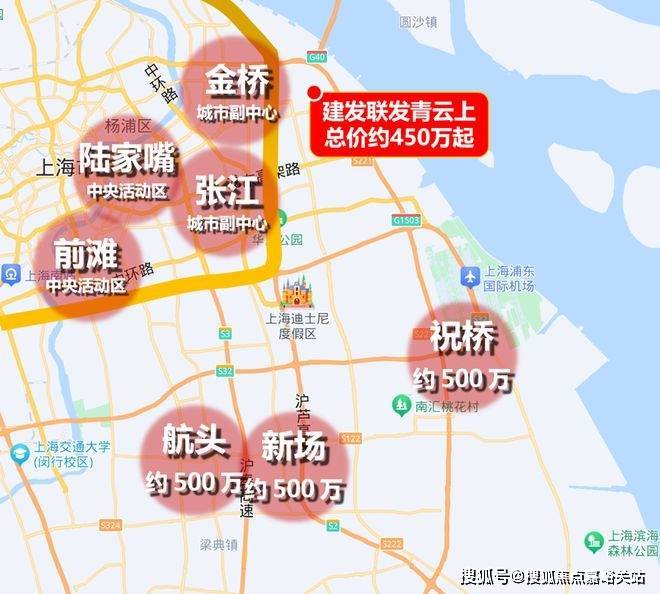 放在整个浦东范围内,「建发联发青云上」在地段上的优势十分明显:单价5万左右价格上段上的价值高地+外环线上的价格洼地。