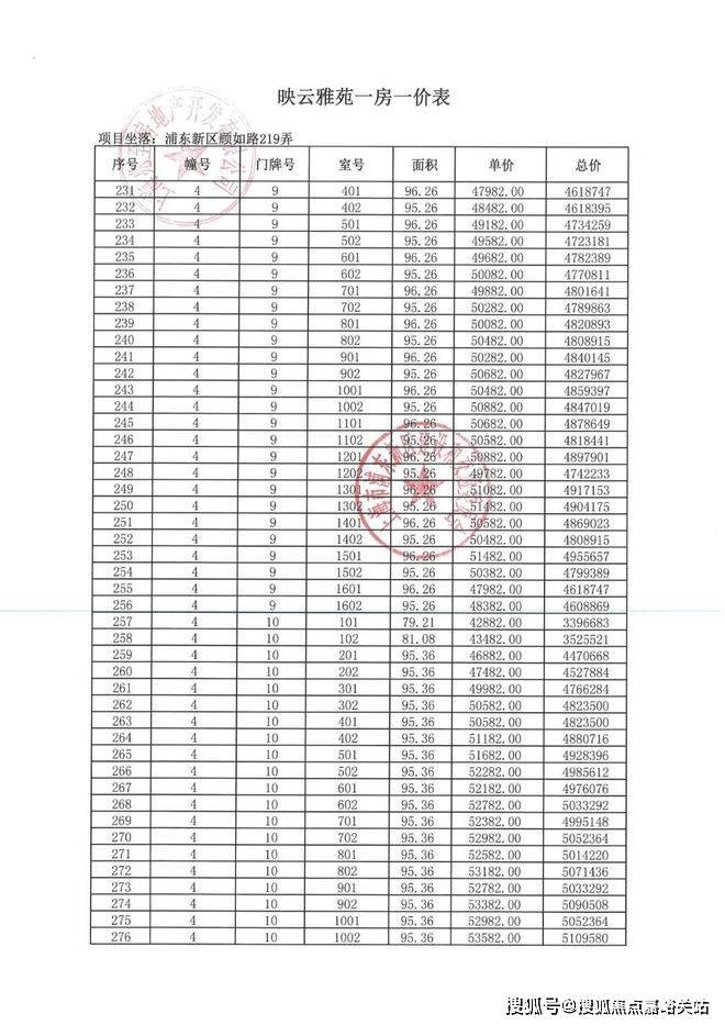 项目一房一价表▼